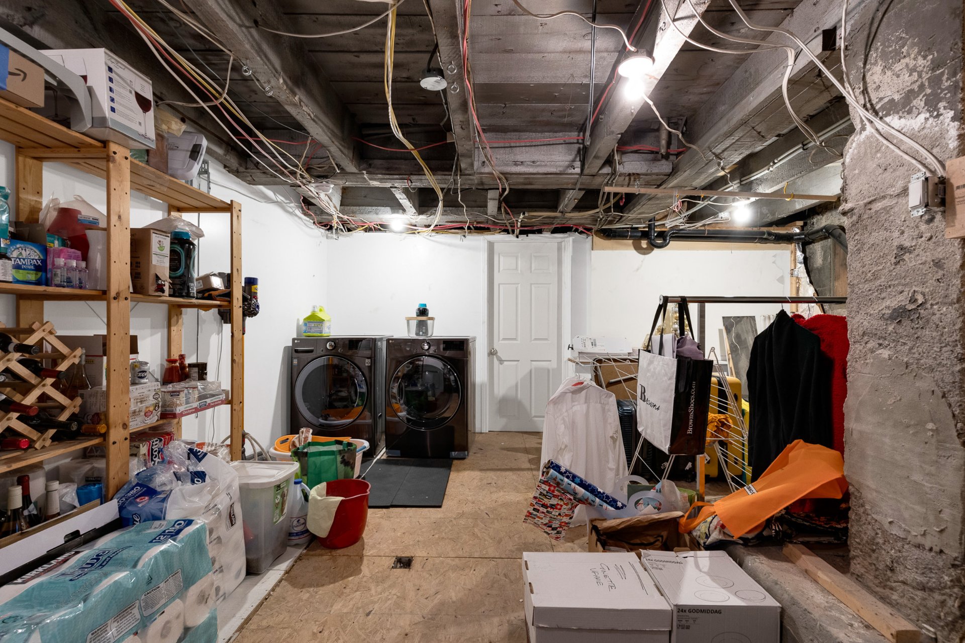 Discreet washer-dryer installation in the basement